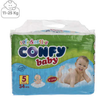 پوشک کودک کانفی سایز 5، راحتی و خشکی بینظیری برای پوست حساس کودک شما فراهم میکند. با قدرت جذب بالا و طراحی ارگونومیک، حرکت آسان و خواب آرام را تضمین میکند. انتخاب هوشمندانهای برای والدین دلسوز! همین حالا خرید کنید و تفاوت را احساس کنید. همین امروز به کودک خود مراقبتی بینقص هدیه دهید!